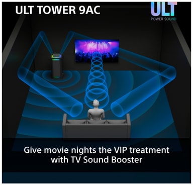 Når den ikke bruges til musik, kan ULT Tower 9AC nemt tilsluttes til de fleste TV'er ved hjælp af det medfølgende optiske kabel. Tryk blot på TV Sound Booster-knappen for at nyde en kraftfuld, biograflignende lydoplevelse, der forbedrer dine yndlingsserier og film.