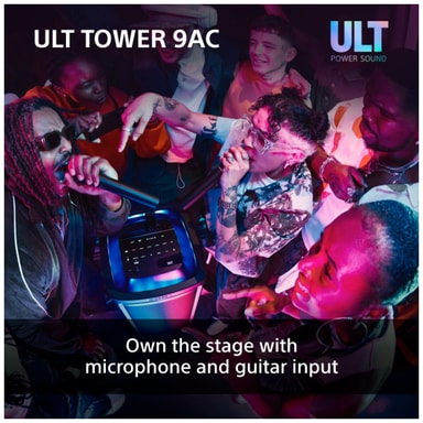 Denne Sony ULT Tower 9AC partyhøjttaler sikrer, at din fest efterlader et indtryk. Det fantastiske lydsystem med X-Balanced højttalere garanterer en utrolig lyd med dyb bas og 360° spredning. Tilslut dine smart-enheder via Bluetooth, stream din yndlingsmusik og imponér dine gæster med LED-lysshowet. Vælg mellem to forskellige specialiserede lydtilstande for at booste din musik og bliv aftenens stjerne med mikrofon- og guitarindgange.