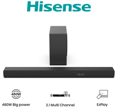 Få det meste ud af dit TV med Hisense 3.1ch HS3100 soundbaren. Den høje lydkvalitet leveres af en trådløs subwoofer, Dolby Atmos og DTS Virtual-X, mens du nemt kan tilslutte dine enheder via Bluetooth.Læs mere om produktet