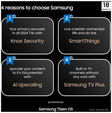 Premiere er designet til at give den bedste seeroplevelse med 4K UHD-kvalitet (3840 x 2160) og 4K AI-opskalering, så du ikke går glip af nogen detaljer, når du ser film og serier, spiller spil eller surfer på en lang række apps og tjenester med Samsung Smart Hub.