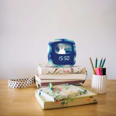 Du kan programmere tid, dato og to alarmer. Billy vækkeuret vil våge over dine guldklumper takket være det integrerede natlys i den lille fleksible silikonekanin. Lysstyrken kan justeres via en ""touch knap"" på vækkeuret, så det er meget nemt at bruge.