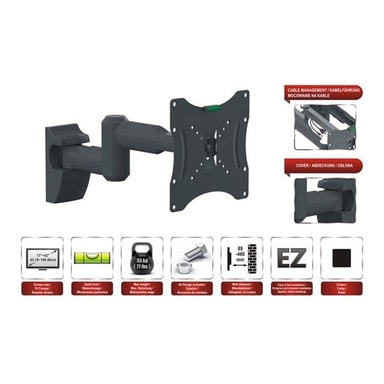 Red Eagle Vægfæste Flexi Apollo 17 - 42 Red Eagle vægmontering for LED-TV. Let og hurtigt at installere - TV-format: 17-42 / cm 43-106 - Vaterpas - Maximal belastning: 35 kg (77 Ibs). - vægafstand 89-466 mm - VESA: max 200x200 mm - hældningsvinkel: +/- 15 ° - svingbarhed: 180 ° - Skal som skjuler stålkonstruktionen - Kabelhåndtering - Farve: Sort - Produktvægt: 1,95 kg