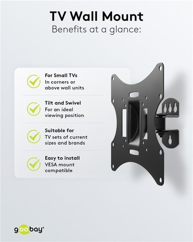 med en dybde på kun 9 cm er produktet perfekt til små tv-apparater i nicher eller over vægskabe, f.eks. i køkkenet eller soveværelset