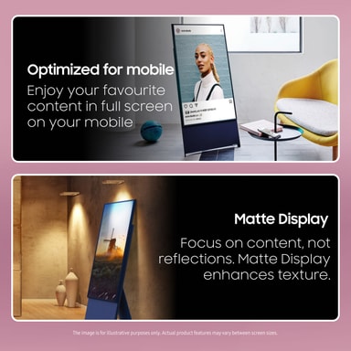 *Skærmen kan drejes manuelt med fjernbetjeningen. Auto Rotation styres af Galaxy-enheder med Samsung Galaxy Android 10 og nyere.