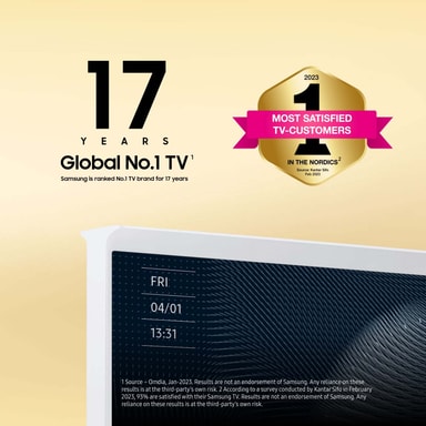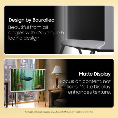 Sammen med Samsung har brødrene Bouroullec fundet plads til et kraftfuldt TV i en verden præget af moderne design. Samsungs QLED-teknologi giver indholdet liv, og den nye matte skærm dæmper forstyrrende refleksioner, når du ser TV, og når skærmen prydes af billeder og kunst.*