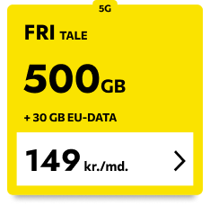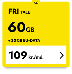 Her får du helt enkelt et stærkt allround-abonnement til en lille, lækker pris. Masser af data - også i 37 europæiske lande, så du er klar til at rejse.