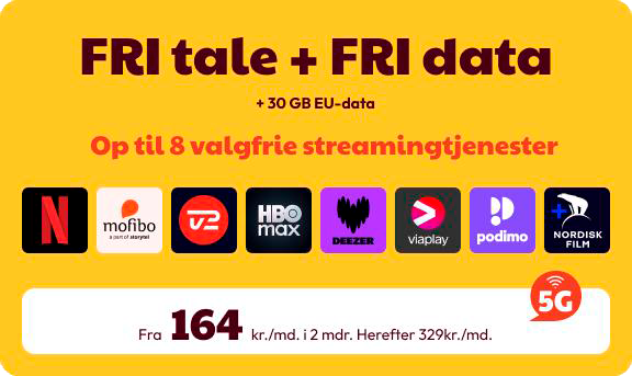 Gi' dig selv og din mobil helt frie tøjler. Her kan du tale, streame og surfe, som du vil, og du får også data i Europa. Det bedste af det bedste - også med 5G.
