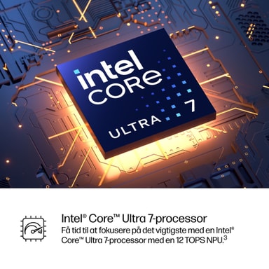• Intel Core™ Ultra 7 255U (op til 5,2 GHz med Intel Turbo Boost Technology, 12 MB L3-cache, 12 kerner, 14 tråde)