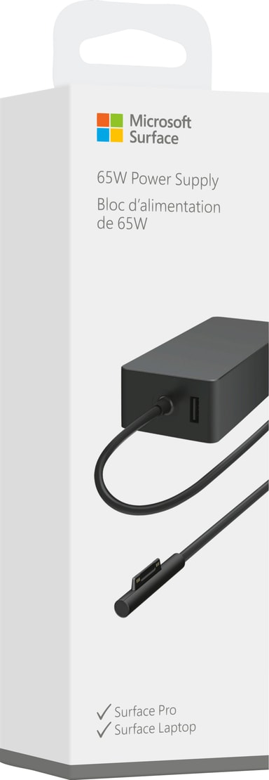 Denne Microsoft Surface 65W bærbar computeroplader giver dig mulighed for hurtigt at genoplade din computer, uanset hvor du er. Opladeren tilbyder en maksimal ydelse på 60W samt 5W USB-A-porte til din telefon, høretelefoner eller tablet. Kompatibel med Surface Laptop og Surface Pro.