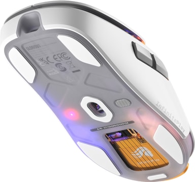 - Den trådløse 8K base viser forskellige data som batteristatus, polling rate og DPI-indstillinger.