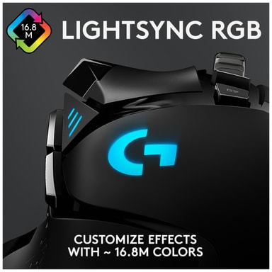 Musen er dit våben, men hvorfor kan et våben ikke også være stilfuldt? Den tilpassede RGB-belysning giver dig mulighed for at vælge mellem over 16,7 millioner farver og forskellige mønstre til din personlige smag. Takket være LightSync-teknologien vil musen skinne i takt med, hvad der sker på skærmen. Du kan endda synkronisere farver og lynmønstre med andre Logitech-G RGB-enheder ved hjælp af Logitech G HUB-softwaren.