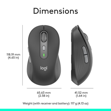 Denne Logitech M750 L trådløs mus tilbyder justerbar DPI for præcis kontrol, Bluetooth og Logi Bolt USB-modtager for kabelfri bekvemmelighed. Den har fem knapper med Silent Touch-teknologi for lydløs betjening og et smart scrollhjul for hurtig og præcis navigation med flere indstillinger til at ændre scrollhastigheden.