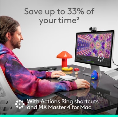 Effektiviser dit arbejde og spar værdifuld tid med Actions Ring, et dynamisk overlay der tilpasser sig hver applikation, du bruger. Denne funktion placerer dine mest brugte værktøjer, filtre og genveje lige ved markøren og reducerer gentagne bevægelser og øger effektiviteten. Med MX Master 4 kan du få adgang til alt, hvad du har brug for, med minimal indsats, hvilket giver et mere smidigt og hurtigere workflow.