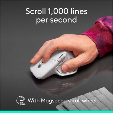 Scroll 1.000 linjer i sekundet, og stop på en pixel med MagSpeed-scrollehjulet – Logitechs hurtigste (3), mest støjsvage og mest præcise (4) scrolleoplevelse