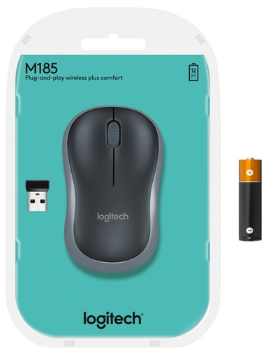 Den kompakte og trådløse Logitech M185 mus har en rundet form, der passer lige godt til begge hænder. Alt du skal gøre for at komme i gang er at tilslutte den trådløse Nano USB-receiver. Nano-receiveren er så lille, at den altid kan sidde i din USB-port uden at genere. Batteriet holder op til et helt år, og med den nemme installation er du kørende på få minutter.