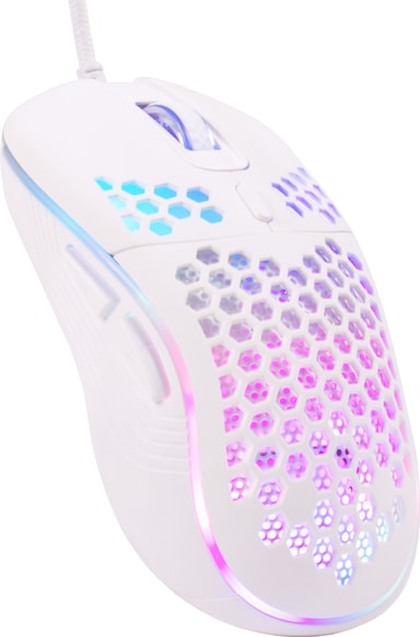 Next SR7 gaming musen giver dig en fremragende gaming oplevelse. Tag enhver udfordring op med den optiske sensor, justerbar sensitivitet og en pålidelig forbindelse. Musen har et honeycomb-design og vejer kun 78 gram.