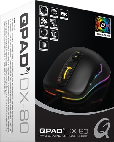 Dominer dine modstandere med QPad DX80 gamingmusen. Den har en præcis optisk sensor med justerbar DPI, et letvægtigt design og stilfuld RGB-belysning, hvilket gør den til et oplagt valg for alle der tager spil seriøst.Læs mere om produktet