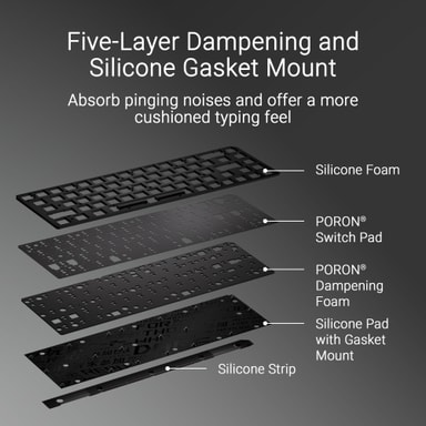Tastaturets kompakte formfaktor på 65 % er designet til pladseffektivitet uden at gå på kompromis med funktionaliteten. Det inkluderer tre vippevinkler for ergonomisk komfort, så brugerne kan justere tastaturet til deres foretrukne skriveposition.