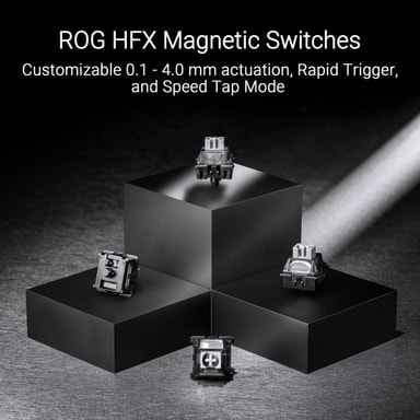 ROG HFX magnetiske switches giver et tilpasseligt aktiveringsområde fra 0,1 til 4,0 mm, hvilket giver mulighed for øjeblikkelige tastetryk skræddersyet til dine præferencer. Disse switches giver en solid følelse, der forbedrer den taktile oplevelse under intense spilsessioner.