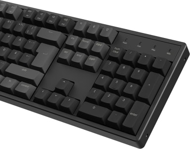 Tastaturet har en 100% formfaktor og har flere skumtyper som IXPE akustisk skum, EPDM-skum og PET-skum for at absorbere vibrationer fra pladen og kontakterne for en mere stille og glat skriveoplevelse. Tre justerbare skrivevinkler på 3,5º, 7,7º og 11º samt buede Cherry-profil keycaps øger tilpasningsmuligheder.