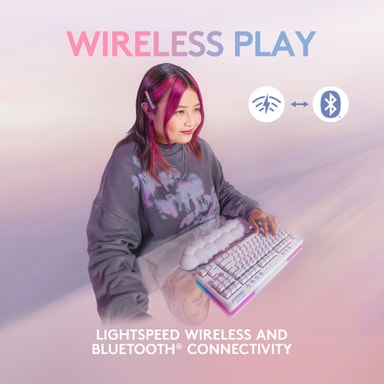Logitech G715 tilsluttes trådløst med en USB-dongle, som nemt tilsluttes til din computer. Den meget hurtige trådløse tilslutning betyder, at du aldrig oplever en forsinkelse mellem det øjeblik, du trykker på tasten, og det øjeblik, hvor der sker noget på skærmen.