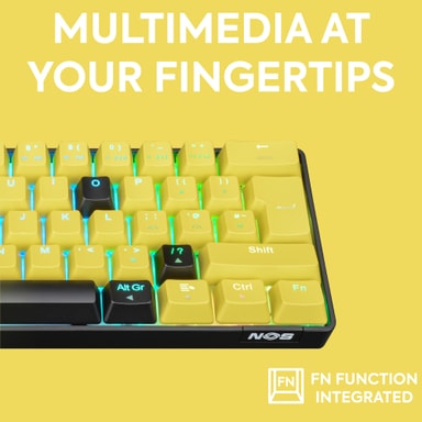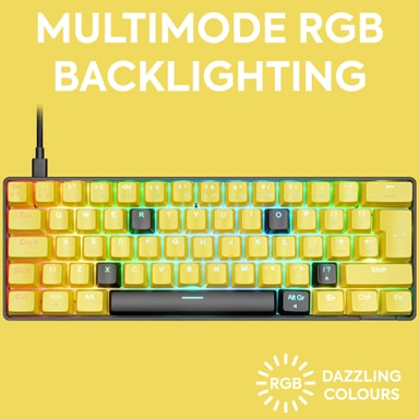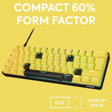 Design: Tastaturet passer godt på dit skrivebord takket være det minimalistiske design og kun 62 taster. Selv konstruktionen er designet med pladsbesparelse i tankerne: Tastaturet er kun 60% så stort som et almindeligt tastatur, hvilket gør det velegnet til at tage med på farten til f.eks. turneringer.