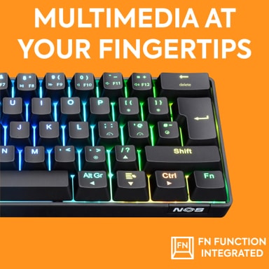 Med NOS C-450 Mini PRO RGB gaming-tastaturet kan du spare plads på dit skrivebord uden at gå på kompromis med ydelsen. Tastaturet er 40% mindre end et almindeligt tastatur med 62 taster og Outemu røde mekaniske switches samt flot RGB-lys med 18 mønstre.Læs mere om produktet