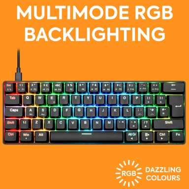 Design: Tastaturet passer godt på dit skrivebord takket være det minimalistiske design og kun 62 taster. Selv konstruktionen er designet med pladsbesparelse i tankerne: Tastaturet er kun 60% så stort som et almindeligt tastatur, hvilket gør det velegnet til at tage med på farten til f.eks. turneringer.