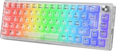 Det slående gennemsigtige look med hvide toppe til nøgler forstærkes af den prangende RGB-belysning, som du kan tilpasse efter dit hjertes ønske. Få et dristigt nyt look til dit skrivebord.