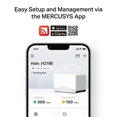 Halo Mesh-teknologi giver en samlet netværksoplevelse, der automatisk forbinder enheder til det stærkeste signal, når du bevæger dig rundt i dit hjem, eliminerer døde zoner og sikrer konsistent ydeevne.