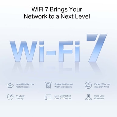 Denne enhed er udstyret med Wi-Fi 7 – den nyeste trådløse standard. Den udvidede kanalbredde fra 160 MHz til 320 MHz leverer op til fire gange højere datahastighed og markant lavere latenstid. Udforsk alle fordelene via linket herunder!
