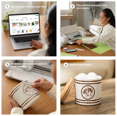 Du kan blive inspireret gennem det store bibliotek af designs, der er tilgængelige i Design Space-appen, og du kan gemme dine egne kreationer til fremtidig reference eller for at andre kan nyde dem!