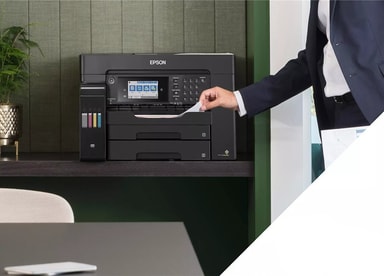 ET-16605 er udviklet til kontoropgaver med A3+-udskrivning, A3-scanning, -kopiering og fax. Det er let at finde rundt i de mange funktioner med LCD-berøringsskærmen på 10,9 cm og de hårde taster.