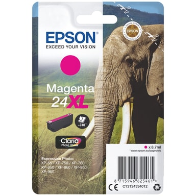 Epson Claria Photo HD 24XL højt udbytte-udskiftningsblækpatron indeholder magenta blæk til Epson Expression Photo -series inkjet printere. Blækket er særligt egnet til fotoprint, og der er nok blæk til op til 740 sider.Læs mere om produktet