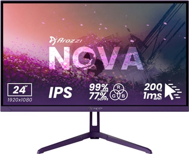 Arozzi Nova FHD | IPS | 200 Hz | 24" gaming-skærmen har 1 ms responstid, 200Hz opdateringshastighed, understøtter Adaptive Sync sammen med et 24" FHD IPS-panel. Den er skabt til både gaming og arbejde.Læs mere om produktet