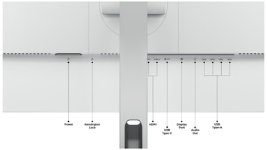 Der er to HDMI2.1-porte, en DisplayPort 1.4-port og en USB-C-port med en DisplayPort 1.4 Alt-tilstand, hvilket betyder, at du kan tilslutte flere enheder til skærmen på samme tid. Du kan også tilslutte alle dine eksterne enheder til skærmen takket være de fire USB-A 3.2-porte. Og der er også et lydstik.
