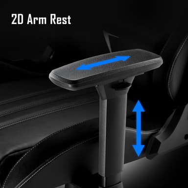 De 2D-justerbare armlæn kan indstilles både lodret i højden og vandret frem og tilbage, hvilket sikrer optimal holdning og komfort under intense gaming-sessioner.
