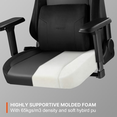 Denne gamingstol har støbt polstring på tværs af sin struktur, hvilket sikrer holdbar formbevarelse. Tre omhyggeligt kalibrerede densitetszoner leverer varig komfort, lændejustering samt fast rygstøtte, hvilket skaber en naturligt støttende fornemmelse.