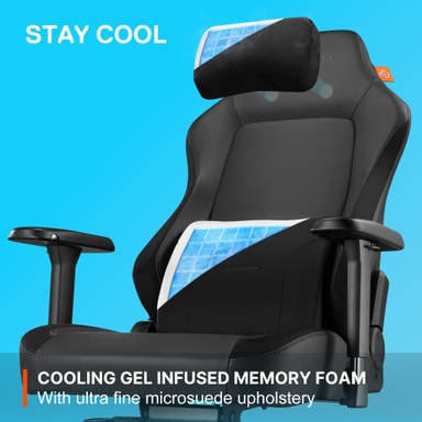 Hold dig kølig og komfortabel under længere gaming med de magnetiske køle-gel memory foam-puder, der kan tilpasse sig din kropsform og også effektivt aflede varme. Disse puder er betrukket med åndbart mikrosuede-stof. Smertefri gaming sikres af den indbyggede lændestøttepude, som giver ideel støtte til din lænd. Den har også en magnetisk nakkepude, som kan justeres til den ønskede position vertikalt.