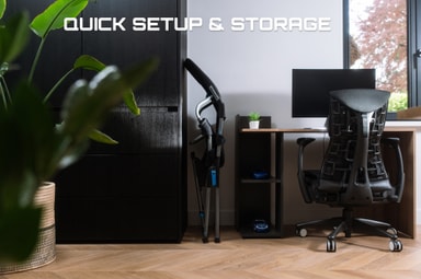 Dette cockpit giver ultimativ racerkomfort. Det foldbare design gør det nemt at opbevare og transportere, mens den robuste stålramme sikrer en solid raceroplevelse. Velcrobånd og justering af knapper giver en tilpasset pasform til længerevarende spil. Det er pakket ind i åndbart ActiFit-stof og giver både holdbarhed og komfort til racerkørere.