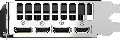 Udstyret med to DisplayPort- og to HDMI-tilslutninger understøtter kortet op til fire skærme, hvilket giver mulighed for omfattende multi-skærm-opsætninger.