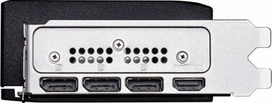 Udstyret med tre DisplayPort 2.1a og en HDMI 2.1-tilslutning understøtter kortet op til fire skærme, hvilket giver mulighed for omfattende multi-display-opsætninger.