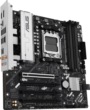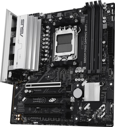 ASUS B850M MAX Gaming Wi-Fi bundkortet er et microATX bundkort bygget til AMD AM5 processorer og bruger AMD B850 chipsættet. Det er kompakt, kraftfuldt og perfekt til gaming-systemer med begrænset plads.Læs mere om produktet