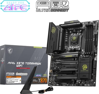 Slip det fulde potentiale af din gaming-rig løs med MSI MAG X870 TOMAHAWK WIFI-bundkortet, et kraftcenter designet til at skubbe grænserne for gaming-ydeevne. Konstrueret til de seneste CPU'er i AMD Ryzen 9000-serien er dette bundkort et vidnesbyrd om højhastighedsforbindelse og robust strømforsyning. Med sit militærinspirerede design står MAG X870 TOMAHAWK WIFI som et symbol på holdbarhed og pålidelighed, klar til at tackle de mest krævende spil og applikationer.