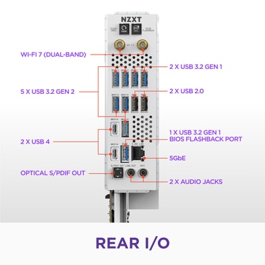 NZXT N9 X870E bundkortet tilbyder overlegen forbindelse med Wi-Fi 7, Bluetooth 5.4, understøtter DDR5-hukommelse, har PCIe 5.0 og AMD X870E-chipsæt for fremragende ydeevne og udvidelighed.Læs mere om produktet