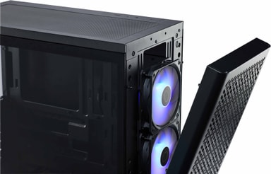 Elite 502 har et moderne mesh-front design, der kombinerer stil med funktion. Det rummelige indre, aftagelige HDD-bur og rene kabelstyringsmuligheder gør det nemt at bygge og opgradere, mens USB Type-C-porten tilføjer et poleret touch