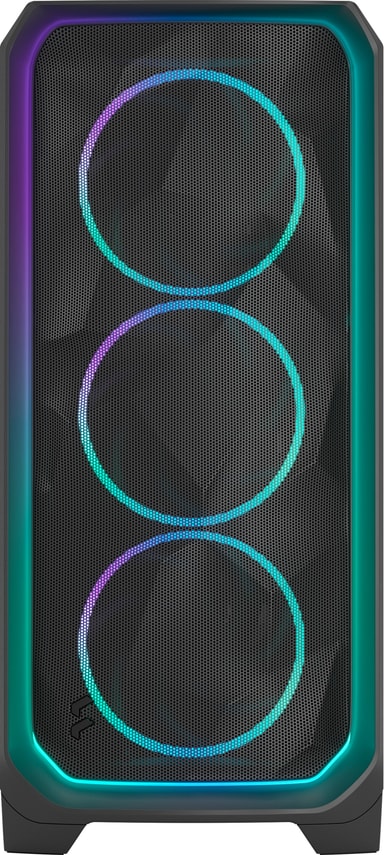 Fractal Design Meshify 3 Ambience Pro RGB PC kabinettet giver dine komponenter rigelig plads og kølemuligheder til at præstere optimalt. Kabinettet har et hærdet glassidepanel, der giver mulighed for at fremvise alle dine lyseffekter, som kan tilpasses via Adjust Pro Hub. Du kan installere grafikkort op til 349mm lange, CPU-kølere op til 173 mm høje og strømforsyninger på 180mm længde. Hold din PC kølig takket være tre præinstallerede 140mm Momentum blæsere og mange radiator- og blæserkonfigurationsmuligheder.