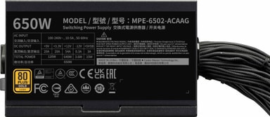 Cooler Master MWE Gold V3 leverer 650W pålidelig strøm, hvilket gør den til et solidt valg til mellemklasse-systemer. Den sikrer stabil ydelse til daglige opgaver og gaming, med tilstrækkelig kapacitet til fremtidige opgraderinger.