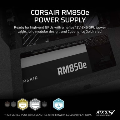 Denne Corsair RM850e strømforsyning tilbyder 80 Plus Gold-effektivitet, et fuldt modulært design med adgang til kablerne fra siden og en lydsvag 120mm blæser for optimal ydelse i spil og til kraftfulde arbejdsstationerLæs mere om produktet