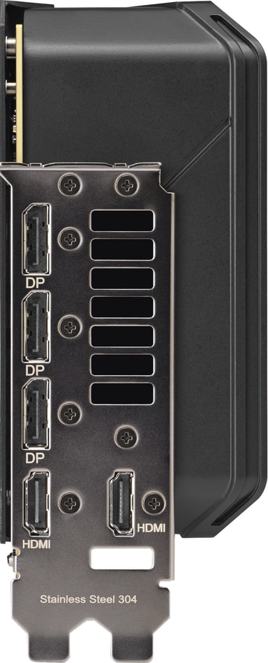 Udstyret med tre DisplayPort 2.1b og to HDMI 2.1b tilslutninger understøtter kortet op til fire skærme, hvilket giver mulighed for omfattende multi-display opsætninger.